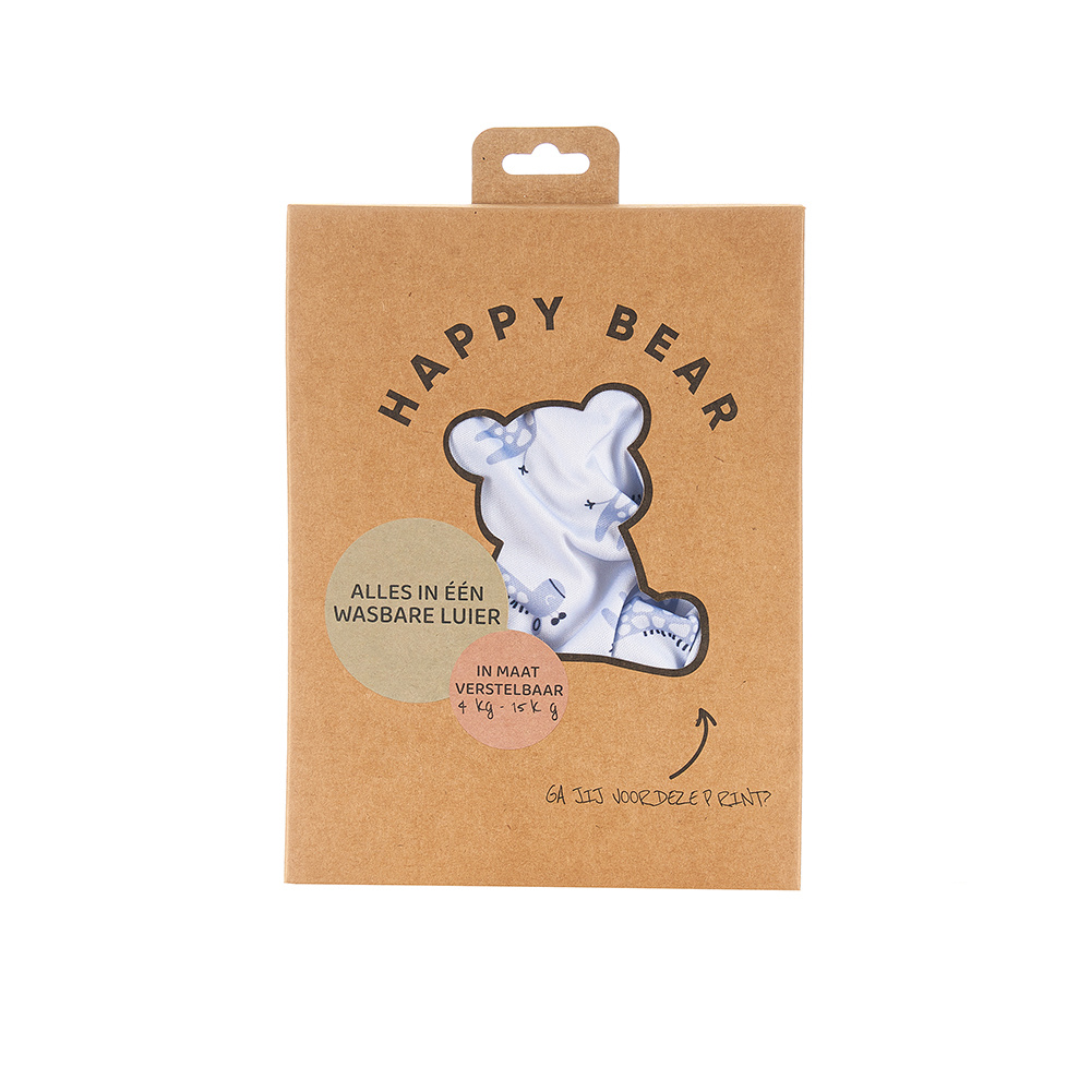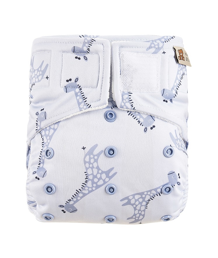HappyBear Diapers - All-In-One Wasbare Luier - Blue Giraffe