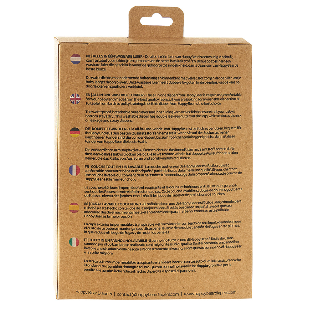 De All-In-One luiers zijn speciaal ontworpen voor langdurig gebruik. Deze wasbare luiers hebben een superzachte en absorberende velvet binnenvoering met dubbele lekgootjes, zodat de billetjes droog en zacht blijven en lekjes worden voorkomen. Gebruik de bamboe inlegvellen om het verschonen van een poepje gemakkelijk te maken. De inlegger zorgt er namelijk ook voor dat een plasje extra goed opgevangen wordt. Na het verschonen gooi je het inlegvelletje gewoon in de prullenbak.