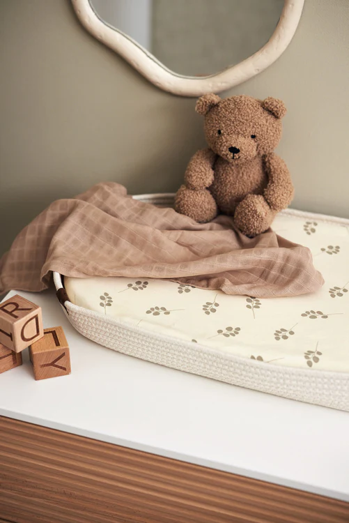 Dankzij het elastiek rondom blijft de hoes stevig om het aankleedkussen zitten, zonder te verschuiven. Hij is eenvoudig te verwijderen en machinewasbaar, waardoor je hem moeiteloos schoon kunt houden. Met een afmeting van 50x70 cm past de hoes op vrijwel elk standaard aankleedkussen.