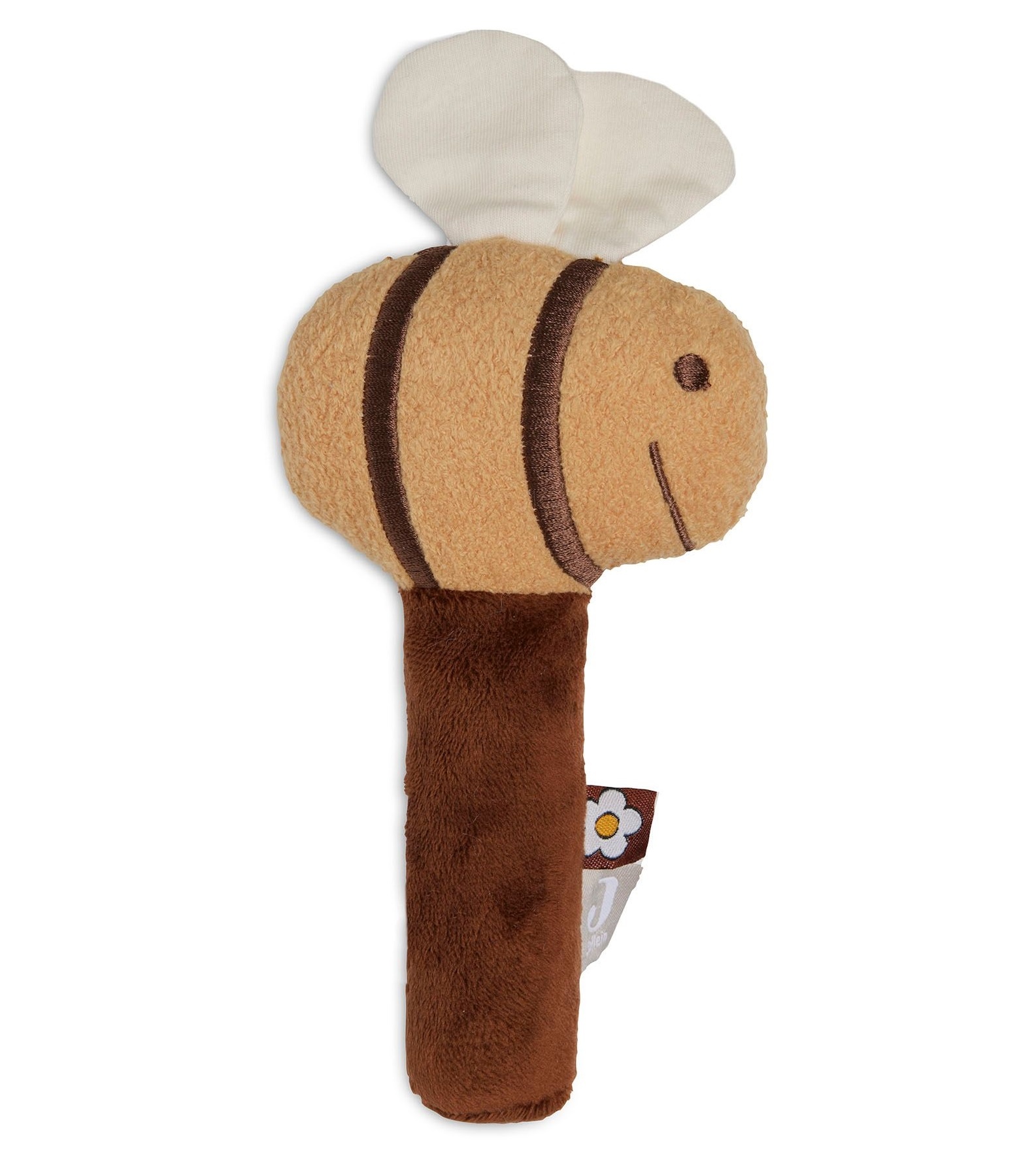 Het bijtje is gemaakt van 100%. polyester. Het bloemetje zelf is gemaakt van het aaibare Teddy en het steeltje van het zachte velours. De vulling is van 100% polyester fibre fill. In het speeltje zit een metalen belletje.