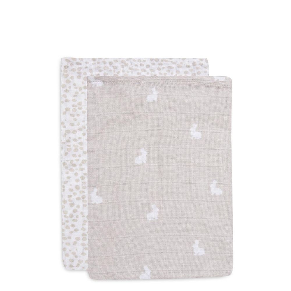 Jollein - Washandje Hydrofiel Dotted & Rabbit - Nougat - GOTS - 2 Stuks